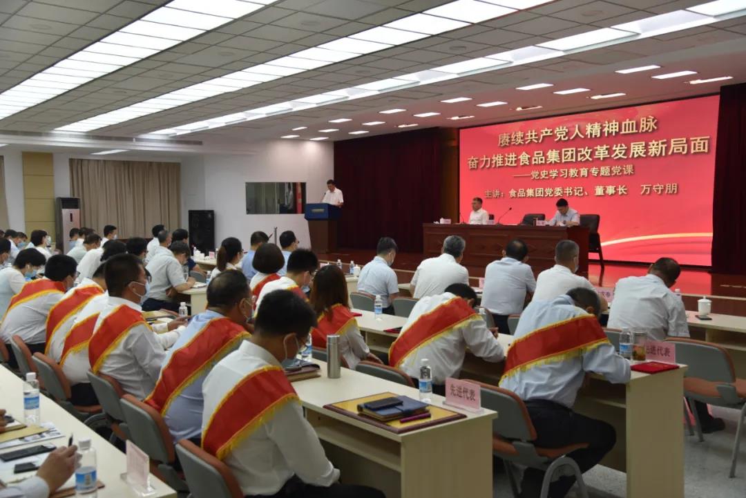萬守朋以《賡續(xù)共產(chǎn)黨人精神血脈 奮力推進(jìn)食品集團(tuán)改革發(fā)展新局面》為題,圍繞銘記黨的奮斗歷程,矢志不渝推進(jìn)黨的偉大事業(yè);集團(tuán)改革發(fā)展的生動(dòng)實(shí)踐,彰顯集團(tuán)系統(tǒng)各級(jí)黨組織的凝聚力戰(zhàn)斗力和廣大黨員的先鋒本色;大力弘揚(yáng)中國(guó)共產(chǎn)黨人的擔(dān)當(dāng)精神,再接再厲、攻堅(jiān)克難,建功新時(shí)代等三方面,講授了黨史學(xué)習(xí)教育專題黨課,激勵(lì)廣大黨員干部職工進(jìn)一步奮發(fā)有為,為集團(tuán)“十四五”開好局,起好步再做新的貢獻(xiàn)。