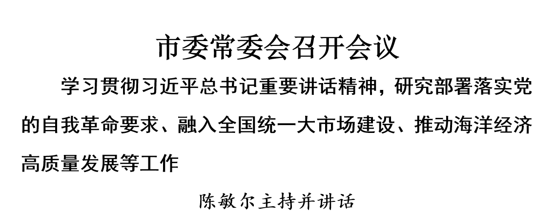 會議強(qiáng)調(diào),要認(rèn)真領(lǐng)會習(xí)近平總書記在中央財經(jīng)委員會第六次會議上的重要講話精神,與深學(xué)深用習(xí)近平經(jīng)濟(jì)思想結(jié)合起來,牢牢把握縱深推進(jìn)全國統(tǒng)一大市場建設(shè)“五統(tǒng)一、一開放”的基本要求,自覺在大局下想問題、做工作,持續(xù)深化要素市場化改革,推進(jìn)市場制度統(tǒng)一、設(shè)施聯(lián)通、監(jiān)管一致,著力推動內(nèi)外貿(mào)一體化發(fā)展,積極參與全國統(tǒng)一大市場建設(shè)。要牢牢把握推動海洋經(jīng)濟(jì)高質(zhì)量發(fā)展的重要要求,提升向海開放、向海發(fā)展能力,科學(xué)編制我市海洋經(jīng)濟(jì)發(fā)展“十五五”規(guī)劃,爭取更多海洋戰(zhàn)略科技力量布局天津,充分發(fā)揮天津港的優(yōu)勢和作用,大力發(fā)展港航服務(wù)業(yè),做大做強(qiáng)臨港產(chǎn)業(yè)、適港產(chǎn)業(yè),加強(qiáng)海洋生態(tài)保護(hù)修復(fù),深入推進(jìn)港產(chǎn)城融合發(fā)展,打造我國北方地區(qū)聯(lián)通國內(nèi)國際雙循環(huán)的重要戰(zhàn)略支點(diǎn)。
